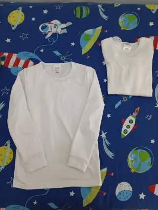 Conjunto de dos camisetas térmicas de manga larga en color blanco. - 2 camisetas de manga larga. - Ysabel Mora. - Talla 10.