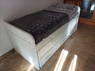 Cama nido funcional con espacio de almacenamiento adicional. - Tres cajones integrados. - Diseño moderno y limpio.