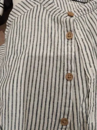 Camisa de rayas para niño, talla 6 años. Ideal para cualquier ocasión. - Diseño de rayas verticales. - Cuello mao. - Cierre de botones de madera. - Bolsillo en el pecho.
