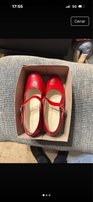 Bonitos tacones rojos para niña, talla 28. - Diseño clásico con tira y hebilla. - Color rojo brillante.