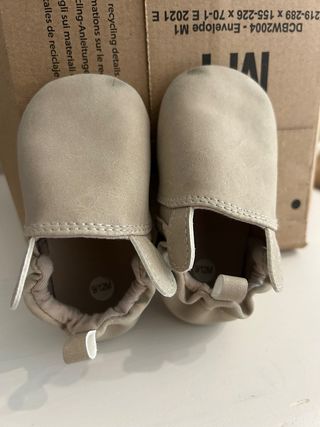 Preciosos mocasines para bebé en color beige, talla 9/12 meses. - Material suave y flexible. - Diseño tipo mocasín. - Talla: 9/12M.