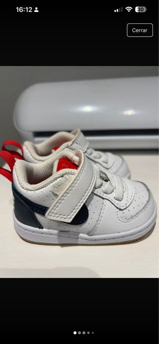 Zapatillas deportivas Nike para bebé en color blanco. Cierre de velcro para mayor comodidad. - Diseño clásico. - Logo de Nike. - Suela de goma. Talla 18.5