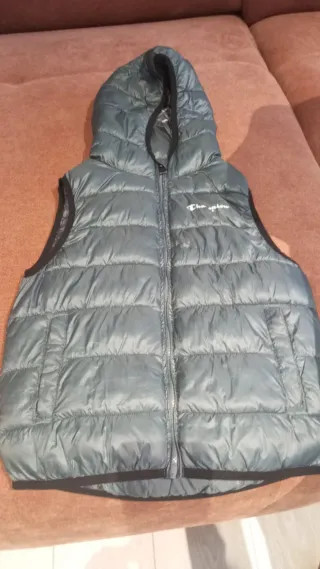 Chaleco acolchado para niñ@ en color azul verdoso. - Talla 9-10 años. - Capucha incluida. - Interior con estampado de logo.