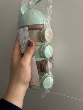 Práctico dosificador de leche en polvo para bebés, con varios compartimentos apilables. - Diseño en tonos pastel. - Ideal para llevar la leche o comida del bebé de forma organizada. - Material plástico apto para alimentos.