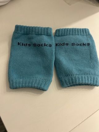 Protege las rodillas de tu bebé mientras aprende a gatear o caminar con estas divertidas rodilleras. - Color azul. - Diseño con cara sonriente. - Material suave y elástico. A mi bebe no le sirvio, le quedo pequeño