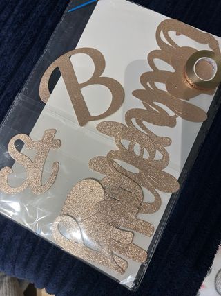 Set de decoración con letras brillantes para Mi Primer Cumpleaños. Incluye todos los elementos necesarios para crear un ambiente festivo. - Letras con acabado glitter en color cobre. - Incluye aguja e hilo para ensamblar. Color gold rose