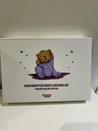 Conjunto de tarjetas para registrar los hitos importantes del bebé. Ideal para recordar momentos especiales. - Diseño con osito y estrellas. - Título: Momentos Inolvidables. - Subtítulo: Tarjetas de Hitos. - Marca: Homy Kids.