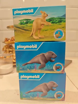 Lote de figuras de animales de Playmobil, edición McDonald's. - Incluye un canguro y dos focas. - Figuras de plástico.