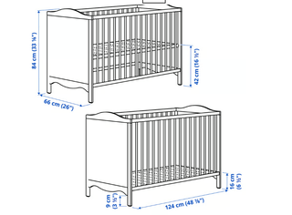 Cuna de madera blanca de IKEA modelo SMÅGÖRA con un diseño clásico y seguro para el descanso del bebé. Incluye colchón. Lo compre de segunda mano para utilizarla durante 1 semana. Tan solo use el colchon y el somier. Se puede enviar, pero por las dimensiones quizás sería mejor en mano - Fabricada en madera. - Barreras de seguridad. - Incluye colchón.