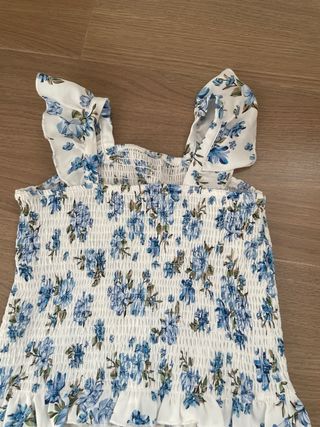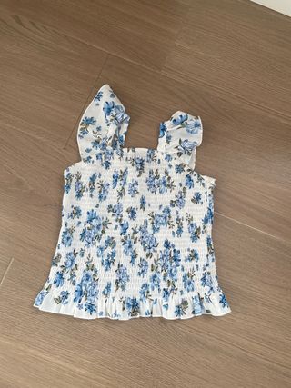 Bonito top con estampado floral. - Diseño con volantes en los tirantes. - Cuerpo fruncido. - Volante en el bajo.