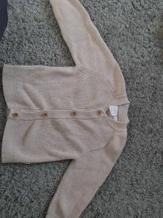 Chaqueta de punto para niño en color beige. Perfecta para abrigar en días frescos. - Cierre de botones de madera. - Manga larga.
