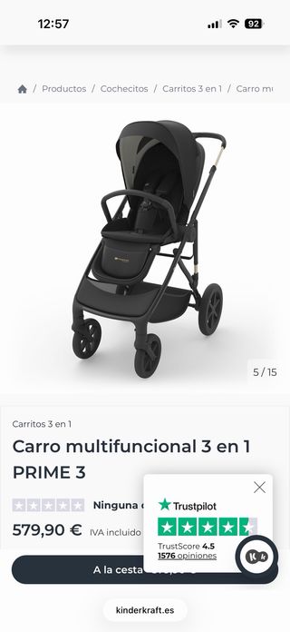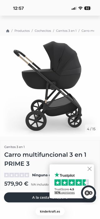 Carro multifuncional PRIME 3, nuevo en su caja y sin estrenar. - Color negro. - Incluye capazo, silla de paseo y portabebés. - Chasis ligero y plegable. - Ruedas todoterreno. SE PUEDE ABRIR ANTES DE COMPRAR Y VER