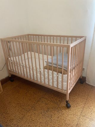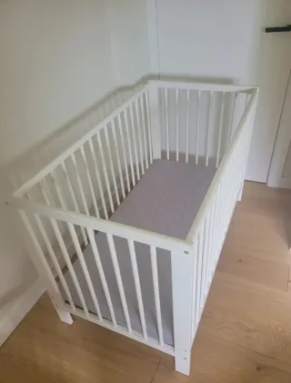 Se vende cuna de Ikea en muy buen estado. Incluye todo lo necesario para empezar a usarla. - Cuna blanca de madera. - Colchón si lo quieres. Cuna marca Gulliver. Nunca utilizado!!! La cuna tiene 2-3 marcas, del almacenamiento. El colchón de Ikea marca Candide.