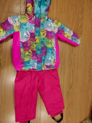 Conjunto de nieve para esquiar o jugar en la nieve. Incluye chaqueta y pantalón. - Chaqueta con estampado floral multicolor. - Pantalón de color rosa fucsia.( No son del mismo color fucsia las dos cosas) - Pantalon Wed'ze y chaqueta CMP - Talla 98 cm.