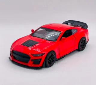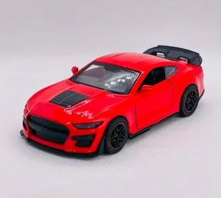 Réplica de coche deportivo de color rojo brillante. Un modelo detallado con un diseño llamativo. - Diseño deportivo con alerón trasero. - Llantas negras con detalles rojos. - Rejilla frontal y detalles en negro.