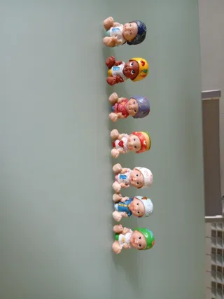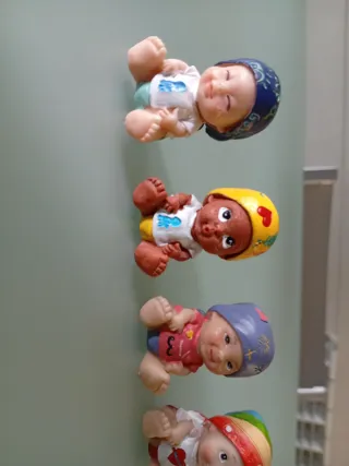 5€ cada unidad Siete figuras de bebés pelones, cada uno con un gorro de diferente color y diseño. - Figuras de bebés. - Gorros de colores variados. - Ideal para coleccionistas o decoración.