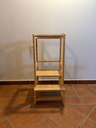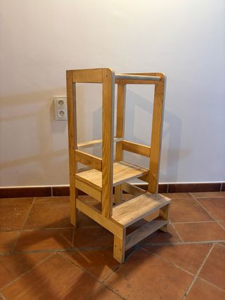 Torre de aprendizaje de madera, inspirada en la pedagogía Montessori. Fomenta la autonomía y la participación en actividades diarias. - Fabricada en madera natural. - Diseño seguro y estable.