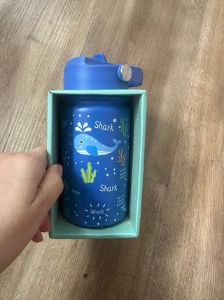 Botella térmica infantil con un divertido diseño de animales marinos. Perfecta para mantener las bebidas a la temperatura ideal. - Color azul vibrante. - Ilustraciones de tiburones y ballenas. - Incluye cañita para beber fácilmente. 350 ml. Son de acero inoxidable 100% libre de BPA . El líquido se mantiene frío 24 horas y el calor 12h. Diseñado y reforzado con doble pared aislada al vacío altamente eficiente . Tiene una tapa superior a rosa hermética a prueba de fugas y que se cierra de forma segura . Resistente al óxido tanto por dentro como por fuera , mantiene el sabor y la pereza de tus bebidas favoritas . Lavar solo a mano.