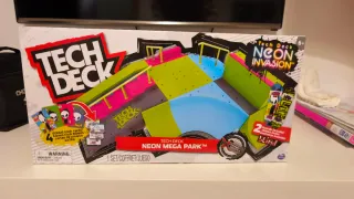Circuito de rampas Tech Deck Neon Mega Park. - NO INCLUYE PATINETES - Incluye 4 cartas de trucos (trick cards). - Diseño con temática Neon Invasion.