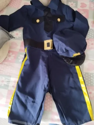 Disfraz de policía para niños, ideal para fiestas o juegos. - Traje de color azul marino. - Detalles en amarillo en las piernas. - Incluye gorra a juego.