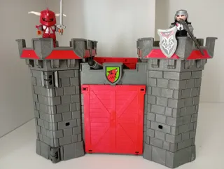 Castillo-Fortaleza del Lobo de Playmobil, ideal para recrear batallas y aventuras. - Incluye dos figuras de caballeros. - Cuenta con una puerta doble roja. - Dispone de un pequeño cañón. - Presenta un escudo del lobo en la parte superior.