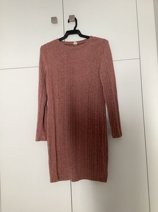 Conjunto de dos vestidos de niña de la marca Shein, talla 11-12 años. - Vestidos de manga larga. - Diseño de canalé. - Color rosa empolvado y gris.