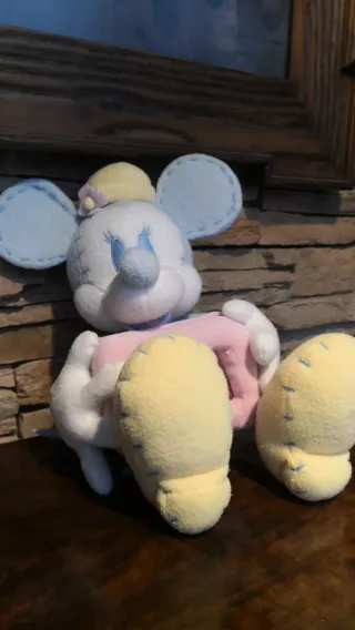 Adorable peluche de Minnie Mouse de Disney, perfecto para los fans más pequeños. - Diseño tierno con detalles bordados. - Colores pastel suaves: blanco, azul claro y amarillo. - Incluye un pequeño lazo en la cabeza.