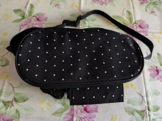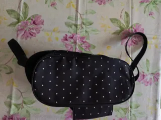 Bolso negro con estampado de estrellas blancas, ideal para colgar en la silla de paseo. - Diseño con estrellas blancas sobre fondo negro. - Cierre de cremallera. - Correa ajustable.