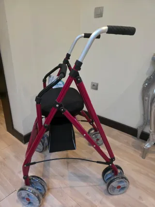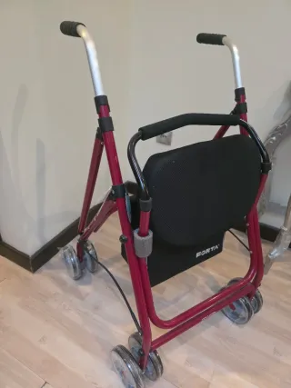 Andador de la marca Forta, completamente nuevo y sin uso. - Estructura de metal resistente. - Asiento acolchado. - Ruedas para facilitar el desplazamiento.
