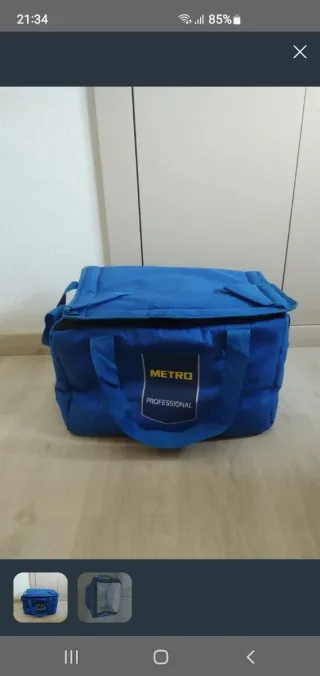 Bolsa térmica de color azul, ideal para mantener la temperatura de los alimentos. Cuenta con asas para facilitar su transporte. - Marca: Metro Professional. - Color: Azul.