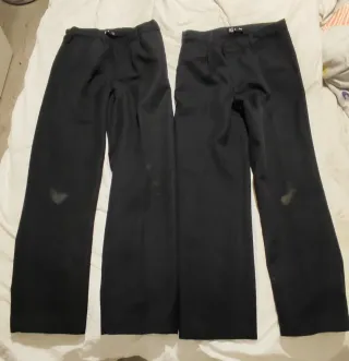 Pantalones grises de colegio, talla 7-8. - Cintura elástica y ajustable con botones. - Cierre de botón y cremallera. - Dos bolsillos laterales. - también usados para fundación Victoria. Tienen las rodillas rozadas, por lo que habría que ponerle rodilleras - Marca Tex.