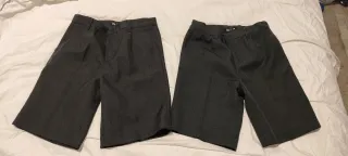 Dos pantalones cortos grises de uniforme escolar. - Talla 6-7 años. - Color gris marengo. - Diseño clásico de pantalón corto. Marca tex. Usados para colegio de fundación Victoria