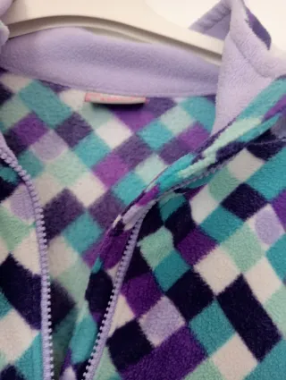 Polar TENT con estampado de rombos en varios colores, bolsillos con cremallera , talla 14 años , ideal para el frio - Talla 14 años. - Diseño de rombos en morado, azul turquesa y blanco.