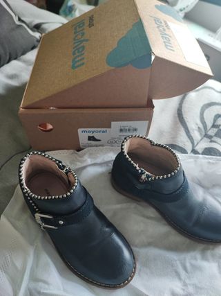 Botines de piel niña T.26 color azul marino marca Mayoral, tiene poco uso, nuevas costaron 30€ conservo caja original.