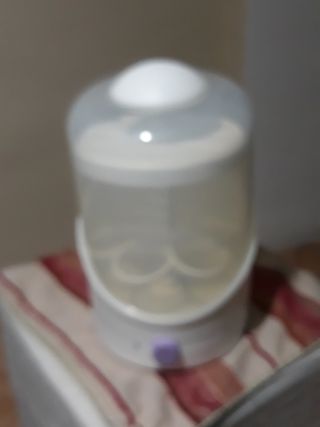 Magnífico esterilizador eléctrico a vapor para 3 biberón tradicionales de plástico (policarbonato). Con uso pero funciona a la perfección. De una gran marca fiable como es Chicco