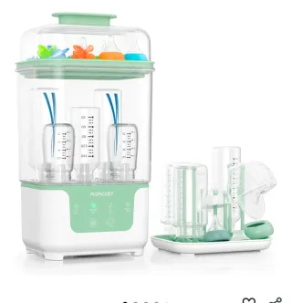 Momcozy Esterilizador y Secador Eléctrico para Biberones, Capacidad para 6 Biberones, Dispositivo 4 en 1 para Biberones, Accesorios y Extractores de Leche, con Soporte de Secado Incluido Esterilizador y secador de biberones de la marca Momcozy. Diseñado para mantener los utensilios de tu bebé limpios y secos. - Capacidad para varios biberones y accesorios. - Incluye bandeja para piezas pequeñas. - Diseño moderno en blanco y verde.