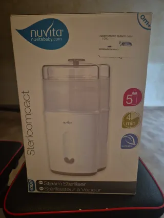 Esterilizador de vapor Nuvita Stericompact. - Modelo: 1082 - Capacidad para 5 biberones - Ciclo de esterilización de 4 minutos - Función natural