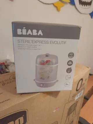 Esterilizador eléctrico Beaba para biberones, chupetes y accesorios de bebé. - Modelo Steril'Express Evolutif. - Capacidad para 9 biberones. - Esterilización por vapor. - Diseño compacto y evolutivo. En perfecto estado. Precio de tienda 75 euros.