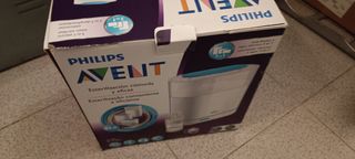 Usado durante 6 meses. Avent 3 en 1 esterilizador a vapor eléctrico es un esterilizador que te permite lavar y esterilizar de forma muy sencilla. Gracias a su tamaño ajustable permite ahorrar espacio en la cocina. Diseñado para utilizar sólo el módulo pequeño para chupetes y tetinas o los 3 módulos depende de la etapa de crecimiento en la que se encuentre el bebé.