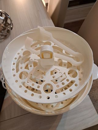 Esterilizador de biberones, chupetes, etc. eléctrico a base de vapor. Permite configurarlo de diferentes maneras ( ver imagen). Se dispone de caja original. Marca Philips Avent.