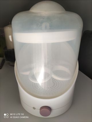 Esterilizador por vapor para biberones, tetillas, chupetes... Está en perfectas condiciones. Es rápido y sencillo.