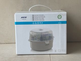 Esterilizador de biberones Jane con su caja y embalaje original Es último modelo de este 2024. Trae pinzas y plataforma para poner biberones.Esta en perfecto estado prácticamente nuevo. Si eres de Sevilla podemos quedar en persona en La Algaba,Sevilla #Por favor abstenerse de regatear gracias#