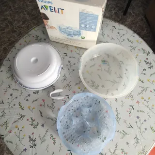 Esterilizador de vapor para biberones y accesorios de la marca Philips Avent.m - Capacidad para 6 biberones. - Ciclo de esterilización rápido. - Indicador luminoso de funcionamiento. 6 meses de uso, pero funciona perfectamente