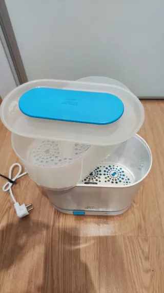 Esterilizador eléctrico Philips Avent. - Diseño compacto y eficiente. - Tapa azul. - Incluye cable de alimentación.