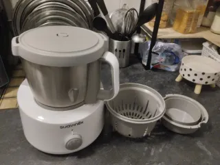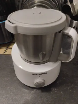 Robot de cocina Suavinex diseñado para preparar comida para bebés. Su diseño es moderno y funcional. - Jarra de acero inoxidable. - Tapa con cierre de seguridad. - Panel de control intuitivo. Tiene cinco funciones siendo estas : Cocinar al vapor, triturar, calentar, descongelar y esterilizar pequeños accesorios Se ha usado dos veces, está como nueva (estado impecable). Se entrega en mano en Carabanchel.