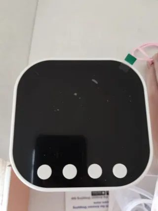 De color verde (aunque parezca azul en las fotos). Esteriliza en tan solo 3 minutos gracias a la luz ultravioleta. Compatible con cualquier tipo de chupete. Funciona con cable USB o con pilas. Con muy poco uso.