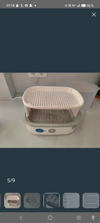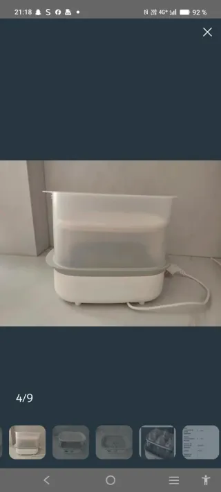 Vendo esterilizador Philips Avent en buen estado y funcionando perfectamente. - Elimina el 99,9% de los gérmenes dañinos sin productos químicos, gracias a la esterilización natural por vapor. - Ciclo rápido y seguro: esteriliza en solo 10 minutos. - El contenido se mantiene estéril hasta 24 horas si no se abre la tapa. - Diseño modular, práctico y adaptable según la cantidad de biberones. - Compatible con biberones anchos y estrechos. Precio original: 75€ Lo vendo por: 39€ Está en muy buenas condiciones. Tiene alguna pequeña marca de cal del uso, pero no afecta en absoluto a su funcionamiento. #esterilizador #biberones #salud