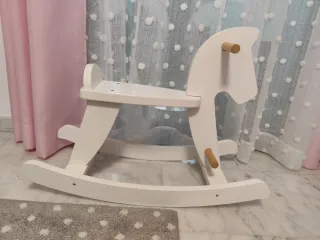 Caballito balancín de madera en color blanco. Ideal para los más pequeños. - Diseño clásico de caballo. - Asas de madera para sujetarse. - Base balancín para balancearse.