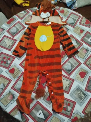 Disfraz de tigre para bebé, perfecto para carnaval o fiestas. Talla 90 cm - Mono completo con estampado de rayas. - Gorro a juego con detalles de tigre. - Incluye cola. - Suave al tacto. Se abre por la parte baja para facilitar el pañal