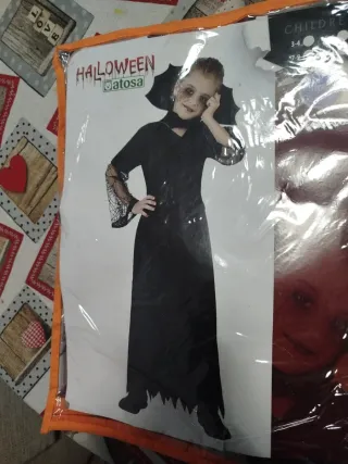 Disfraz de vampira para niña, perfecto para Halloween. Incluye vestido,cuello y diadema con velo - Diseño negro con detalles de encaje en las mangas. - Cuello de murciélago. - Talla infantil 8/9 años